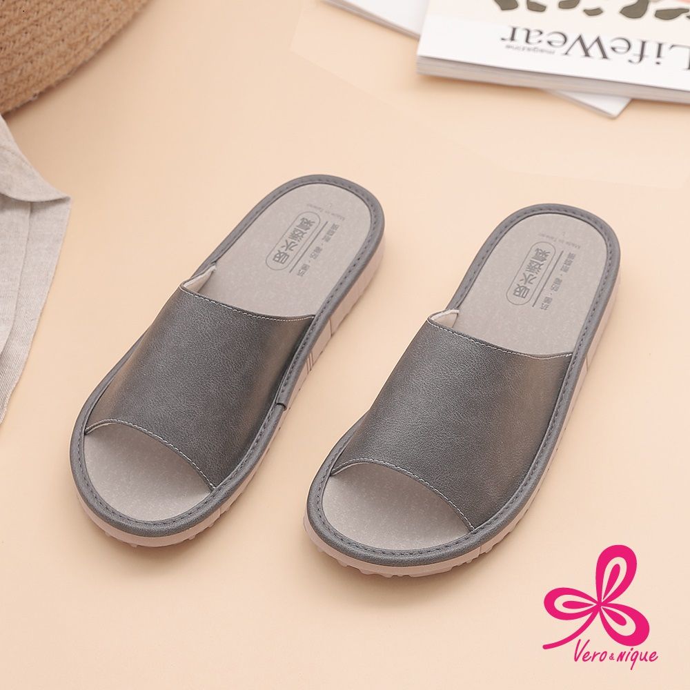 【維諾妮卡】文青風格吸水皮料室內拖鞋(3色) 台灣製 抗菌防霉 瞬吸透氣