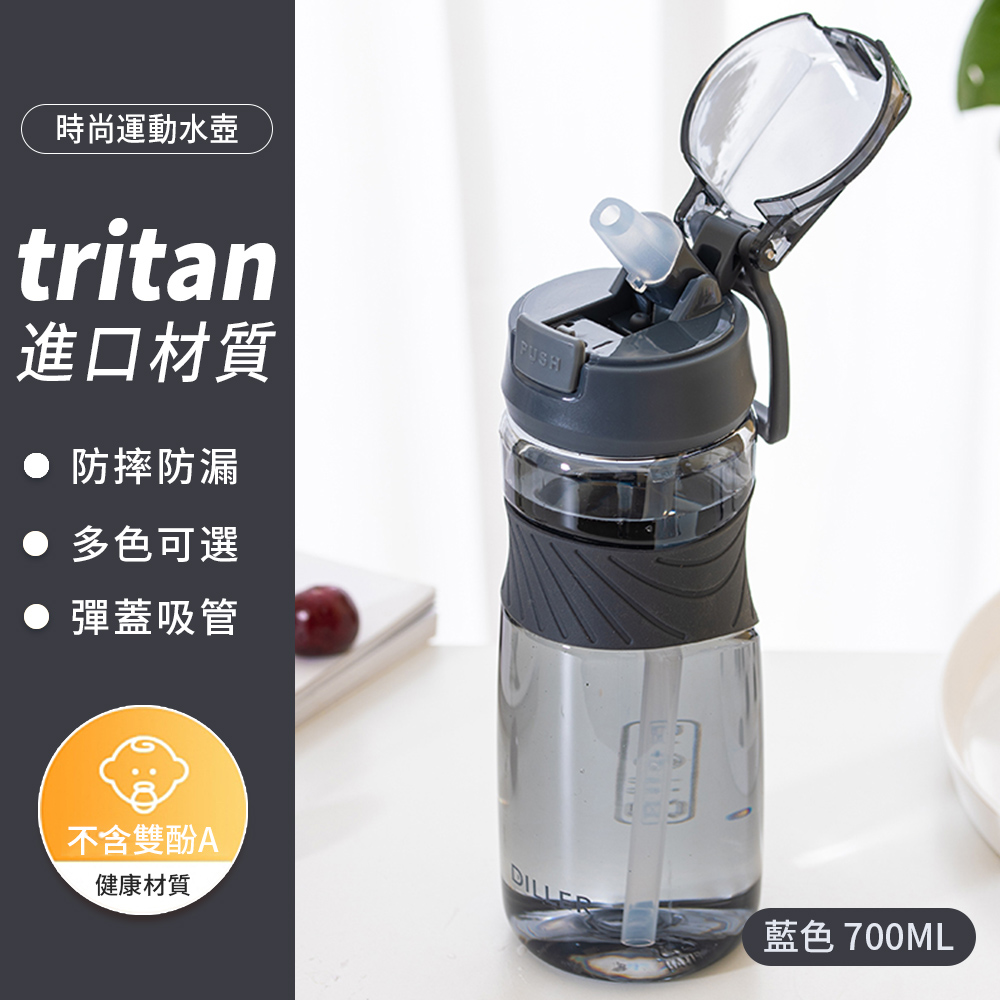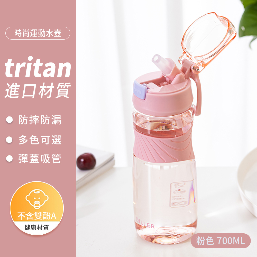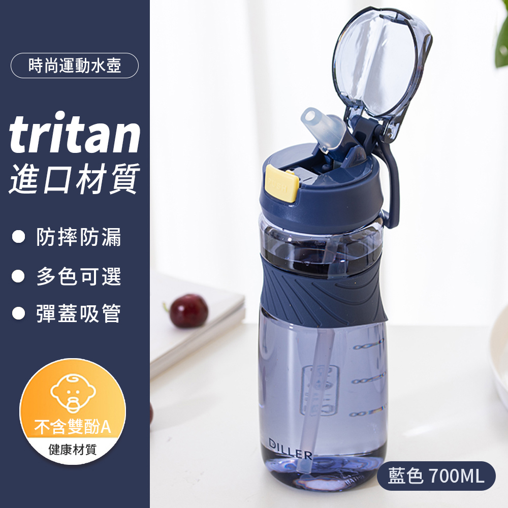 DILLER 磨砂透明運動水壺 美國進口Tritan材質 密封防漏防摔水瓶 戶外大容量隨水杯 700ml 蝦皮直送 現貨