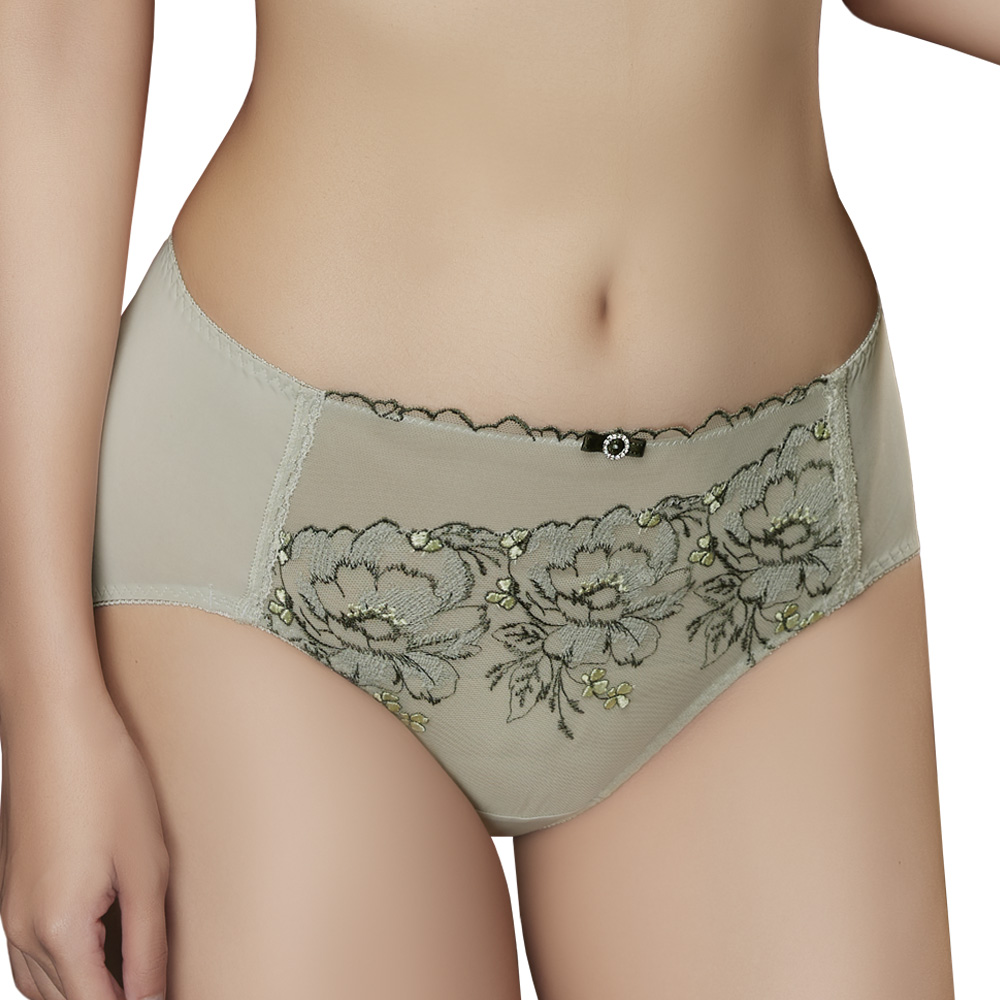 【思薇爾】仲夏玫瑰系列M-XXL蕾絲刺繡中腰三角女內褲(流沙綠)