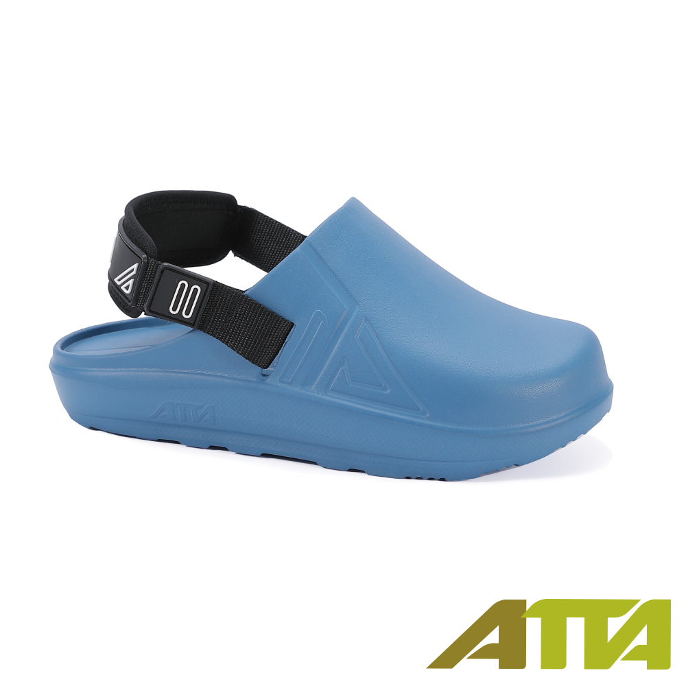 【ATTA】動感極彈包頭室外拖鞋-藍色 產品設計專利D215997 大陸設計專利CN 306755778 S 專利包頭設計 可調節後跟帶,可兩穿 40mm 激厚減震!!! 柔軟材質 回彈超有感 穩定均壓足弓支撐 均壓最舒適 包覆感鞋面 給你滿滿的安全感 嚴選EVA防水材質 雨天也不怕 MIT台灣製 無毒材質安心品質