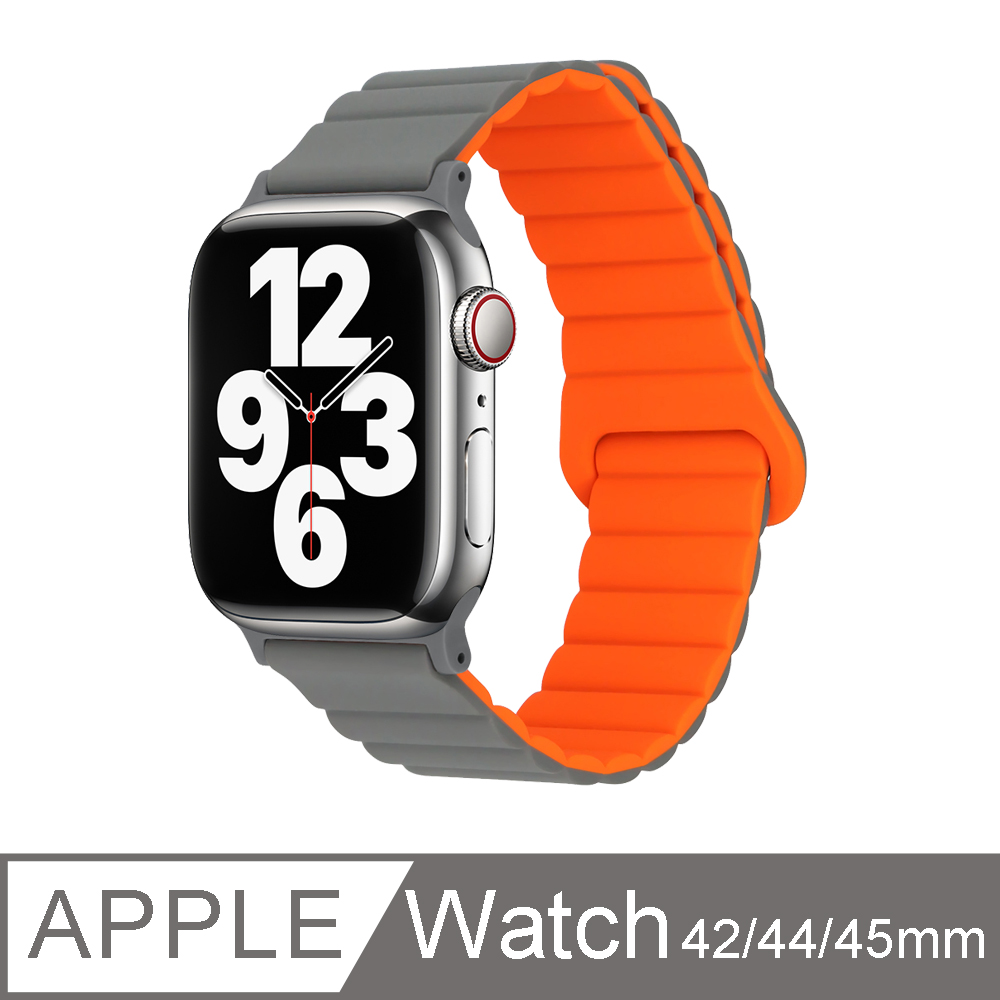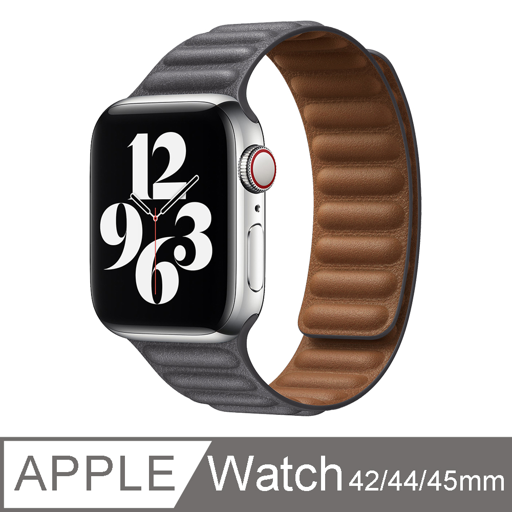 Apple Watch 7/6/5/4/3/2/SE 皮製鏈式磁吸錶帶 iWatch替換錶帶 42/44/45mm通用 丹霞色