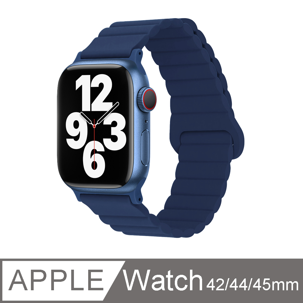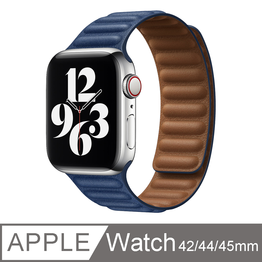 Apple Watch 7/6/5/4/3/2/SE 皮製鏈式磁吸錶帶 iWatch替換錶帶 42/44/45mm通用 午夜藍