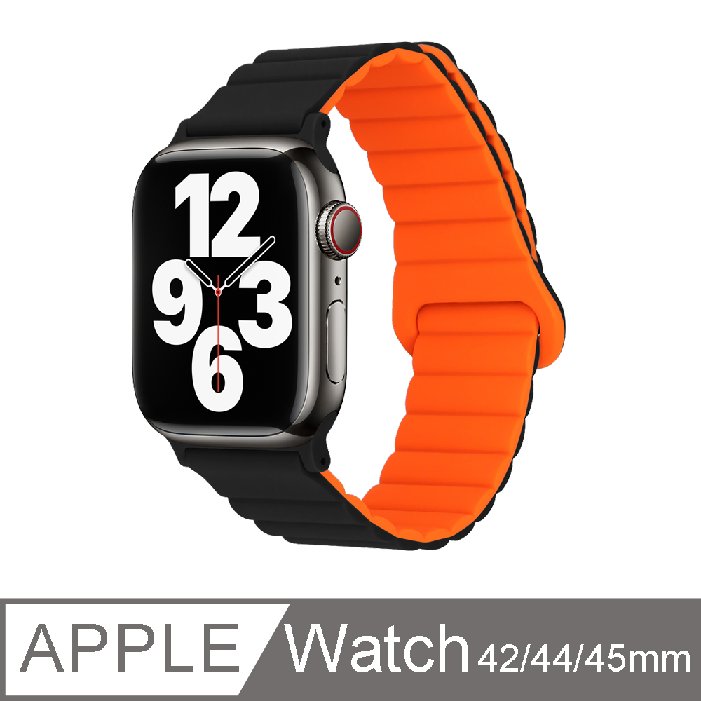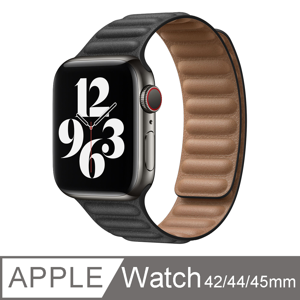 Apple Watch 7/6/5/4/3/2/SE 皮製鏈式磁吸錶帶 iWatch替換錶帶 42/44/45mm通用 黑色
